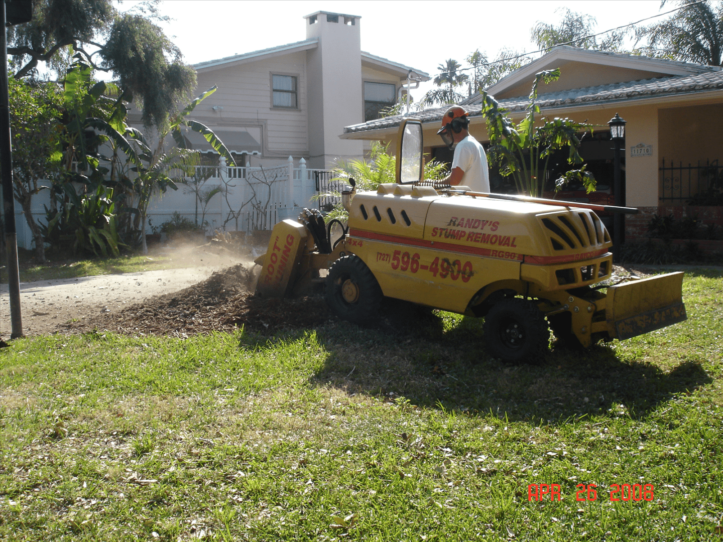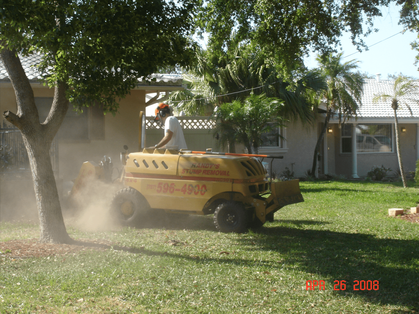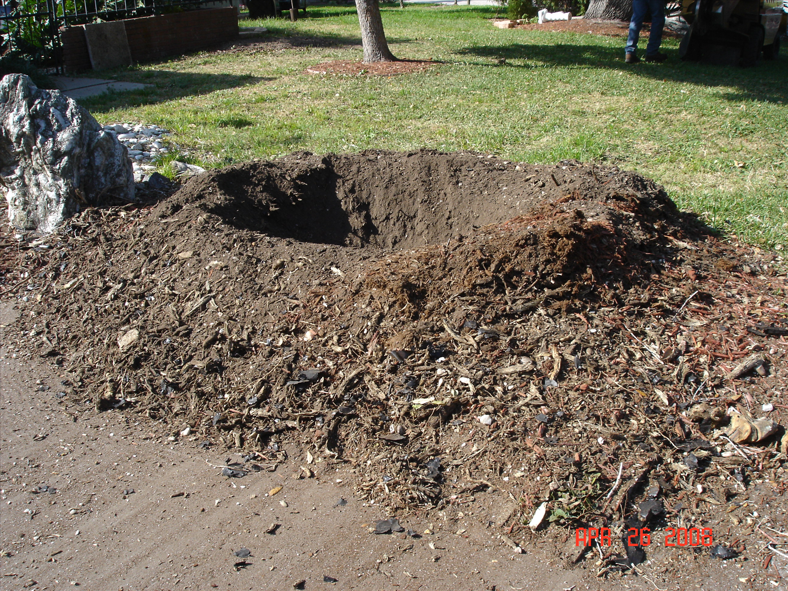 Grinding out a stump so that a tree can be planted in the same place. This type of grind is called a commercial grind.