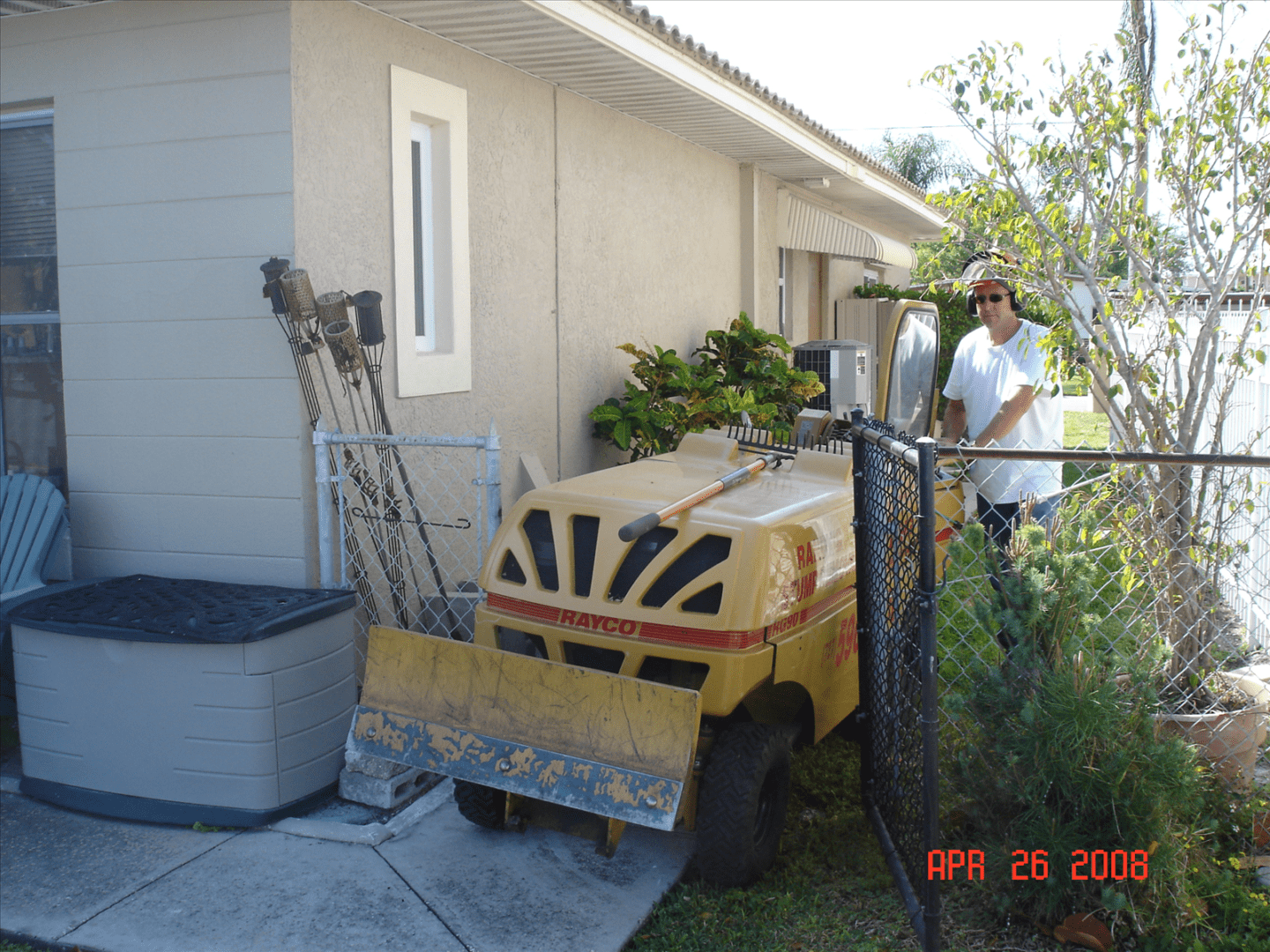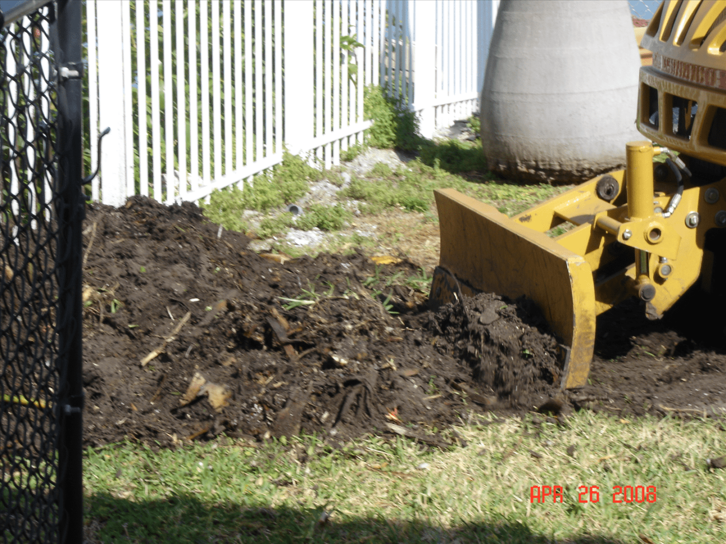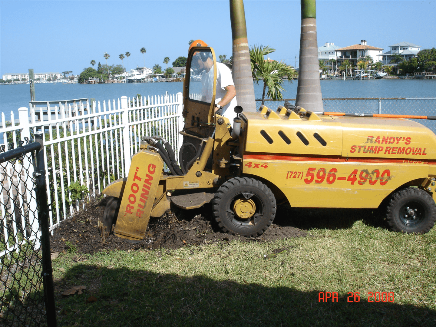 We can fit through standard gates (which have a 36 inch opening). We also grind next to fences and clean up the area after the job is completed so that grass may be planted.